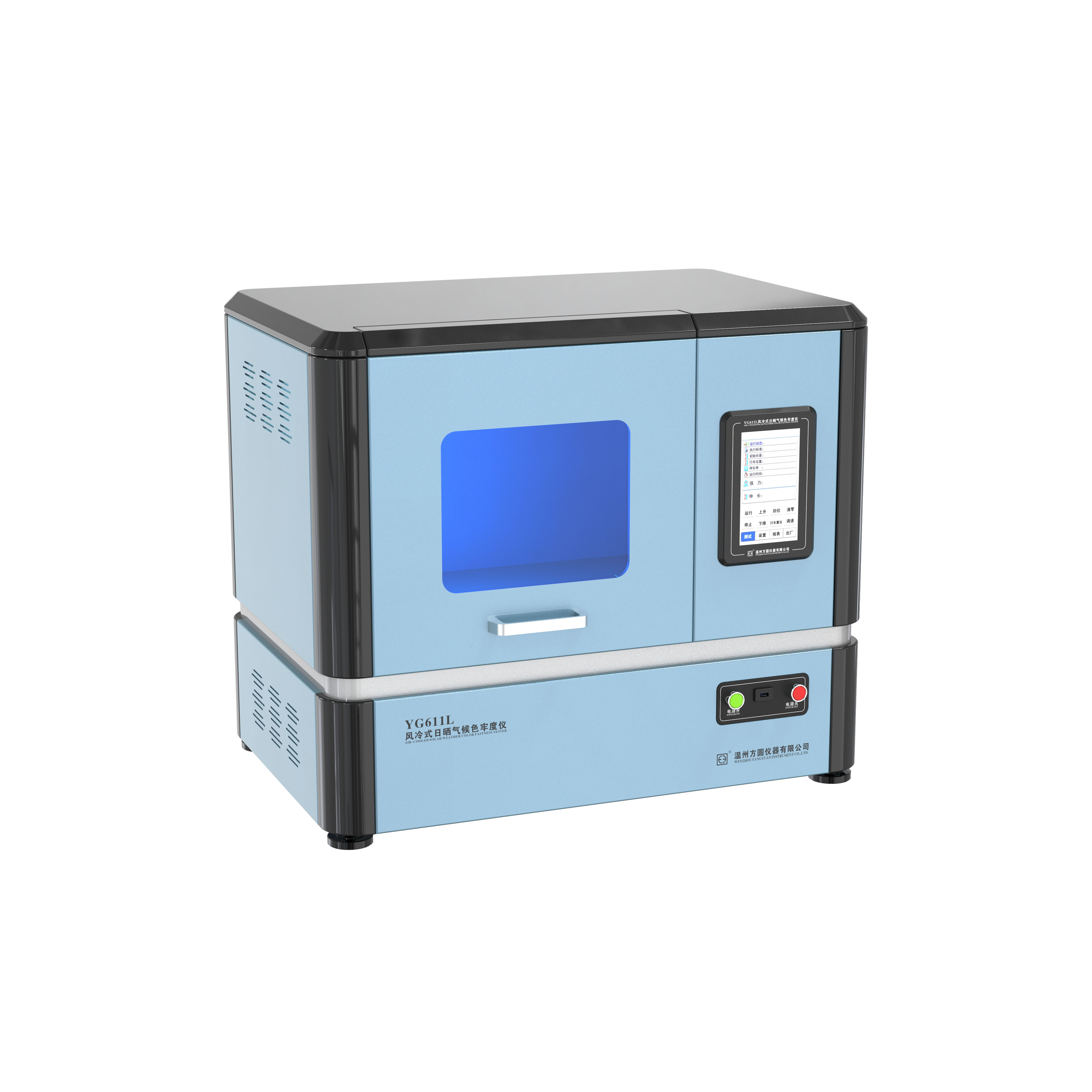 YG611G風(fēng)冷式日曬氣候色牢度儀 GB/T8427-2019、GB/T8427-2008、GB/T8430、GB/T14576、GB/T15102、GB/T15104、ISO105-B02、ISO105-B04、ISO105-B06、AATCC16,169、JIS 0843、GMW 3414、SAEJ1960、1885,JASOM346,PV1303, ASTM G155-1、155-4等。